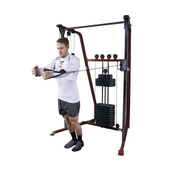 The BFFT10 brings affordable functional training to customers of all exercise levels. The BFFT10 features adjustable pulleys which swivel 180 degrees providing a wide variety of starting positions. The 190lb weight stack is challenging for most users. The no-cable change design allows you to go from exercise to exercise quickly. Two adjustable nylon cable handles are included with the unit.